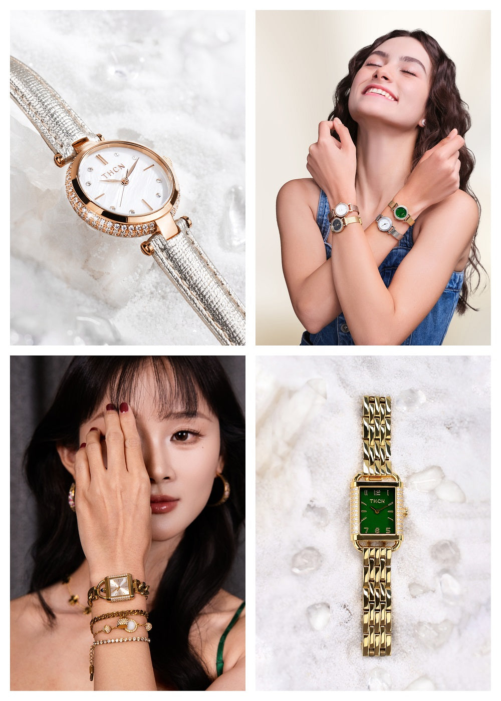 All stone settings are secured using CNC precision setting techniques, rather than adhesive methods, to ensure lasting stability over time. Our watches are powered by high-reliability Japanese movements, while our bags and straps are made from genuine leather.