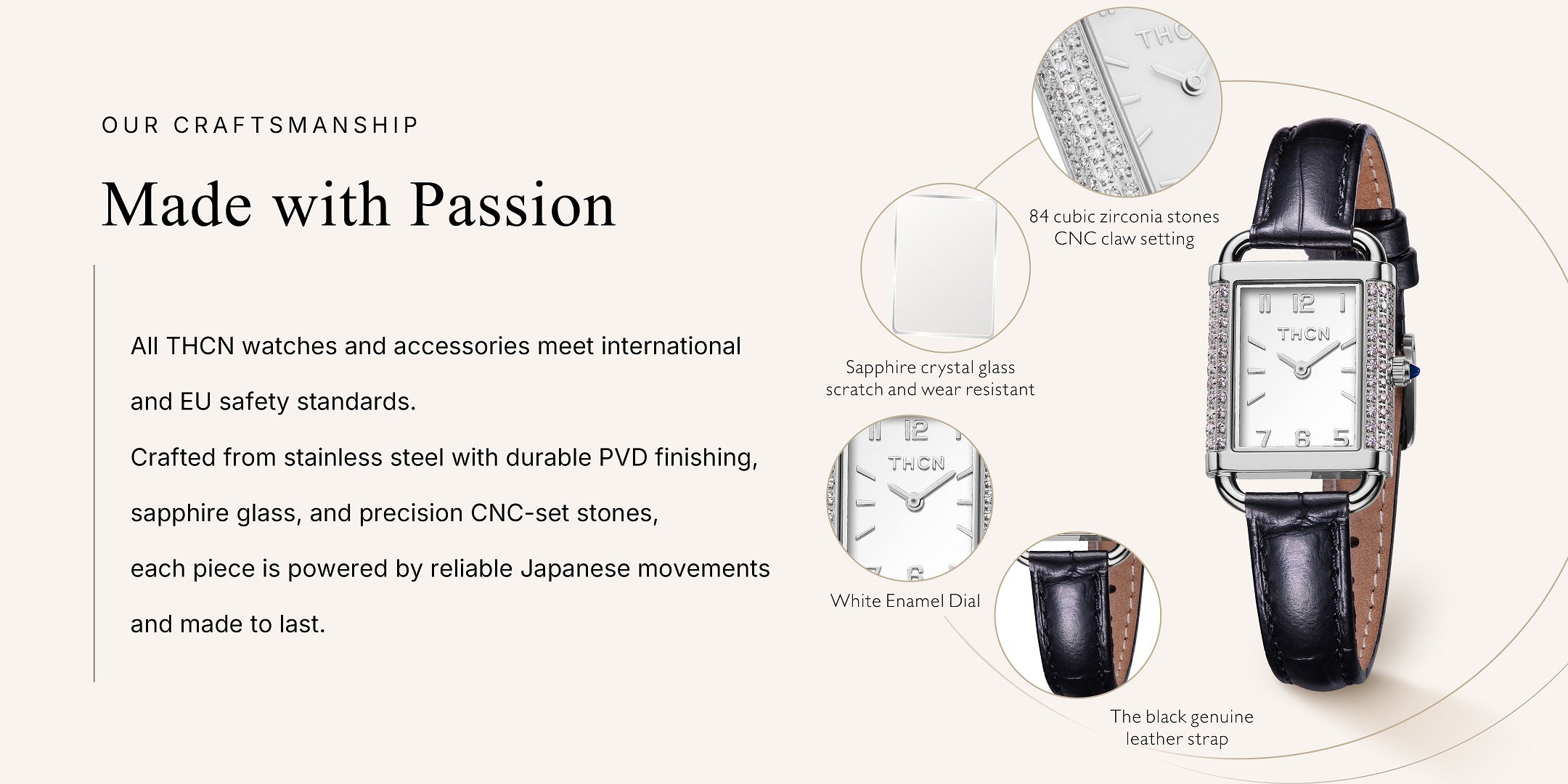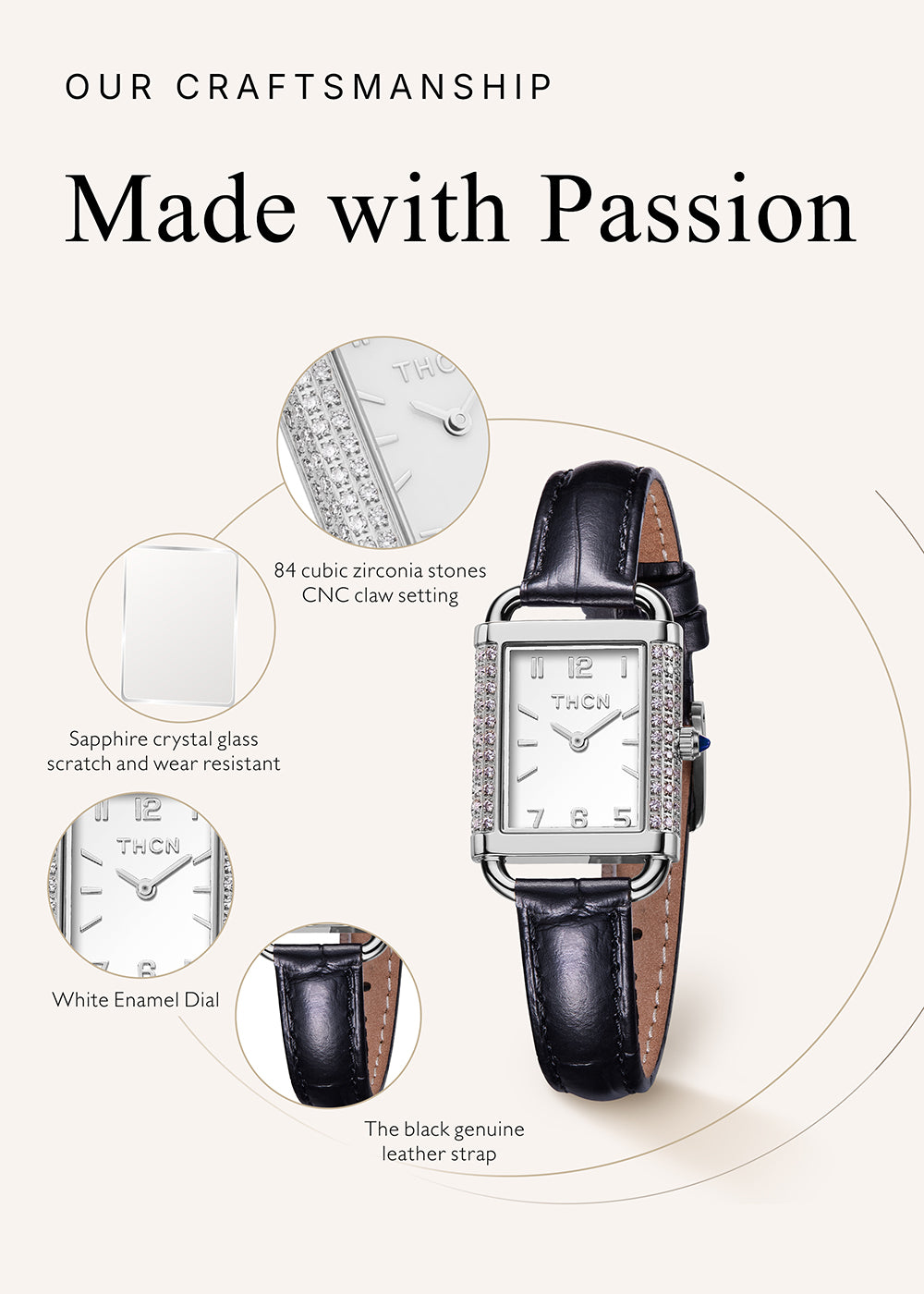 The H collection is one of THCN’s most popular classic designs, defined by a clean rectangular case that creates an elegant and well-balanced proportion.