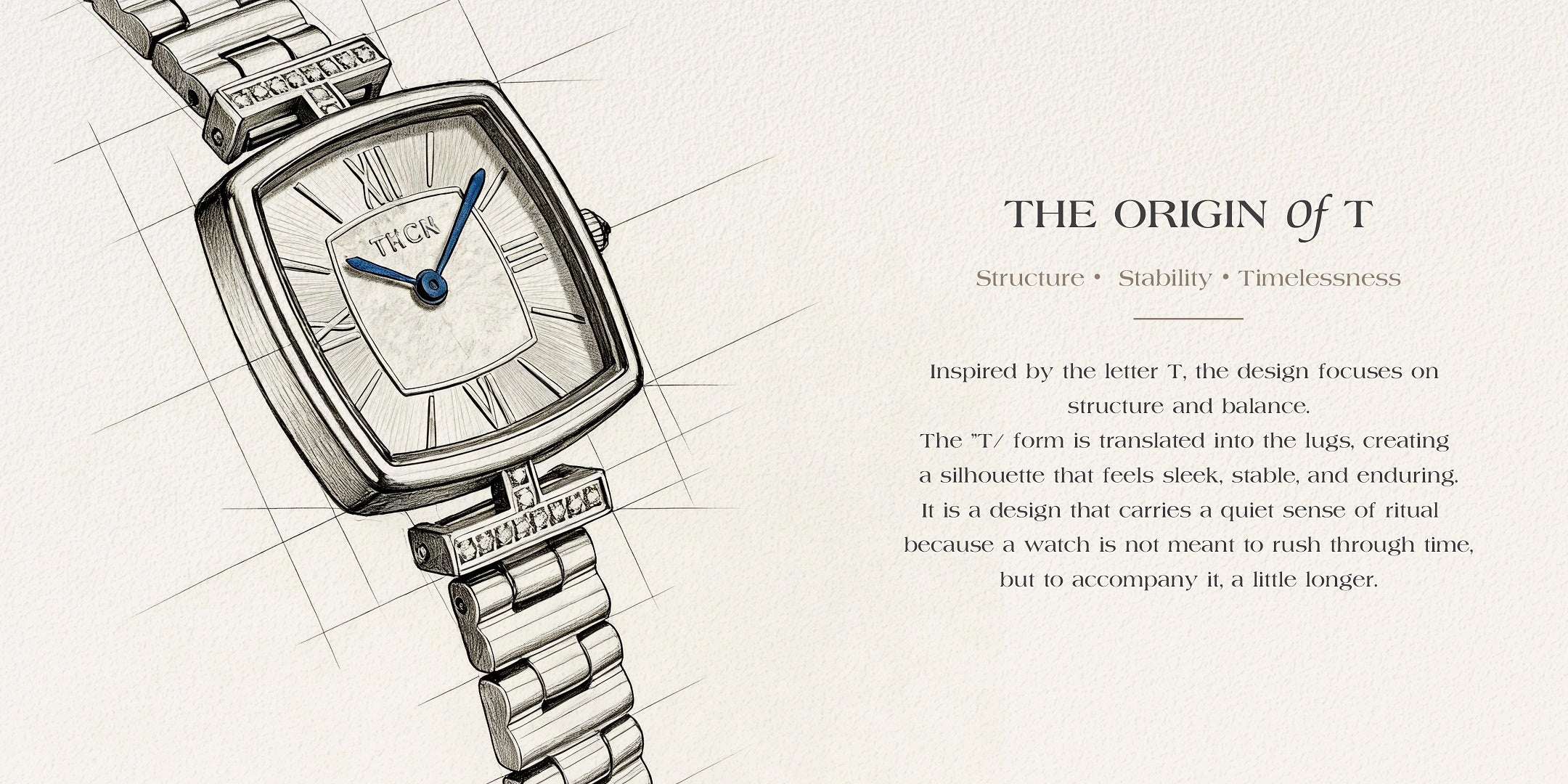 T · II combines an irregular square case with the signature T-shaped lugs, creating clean lines balanced by soft and excellent proportions.
